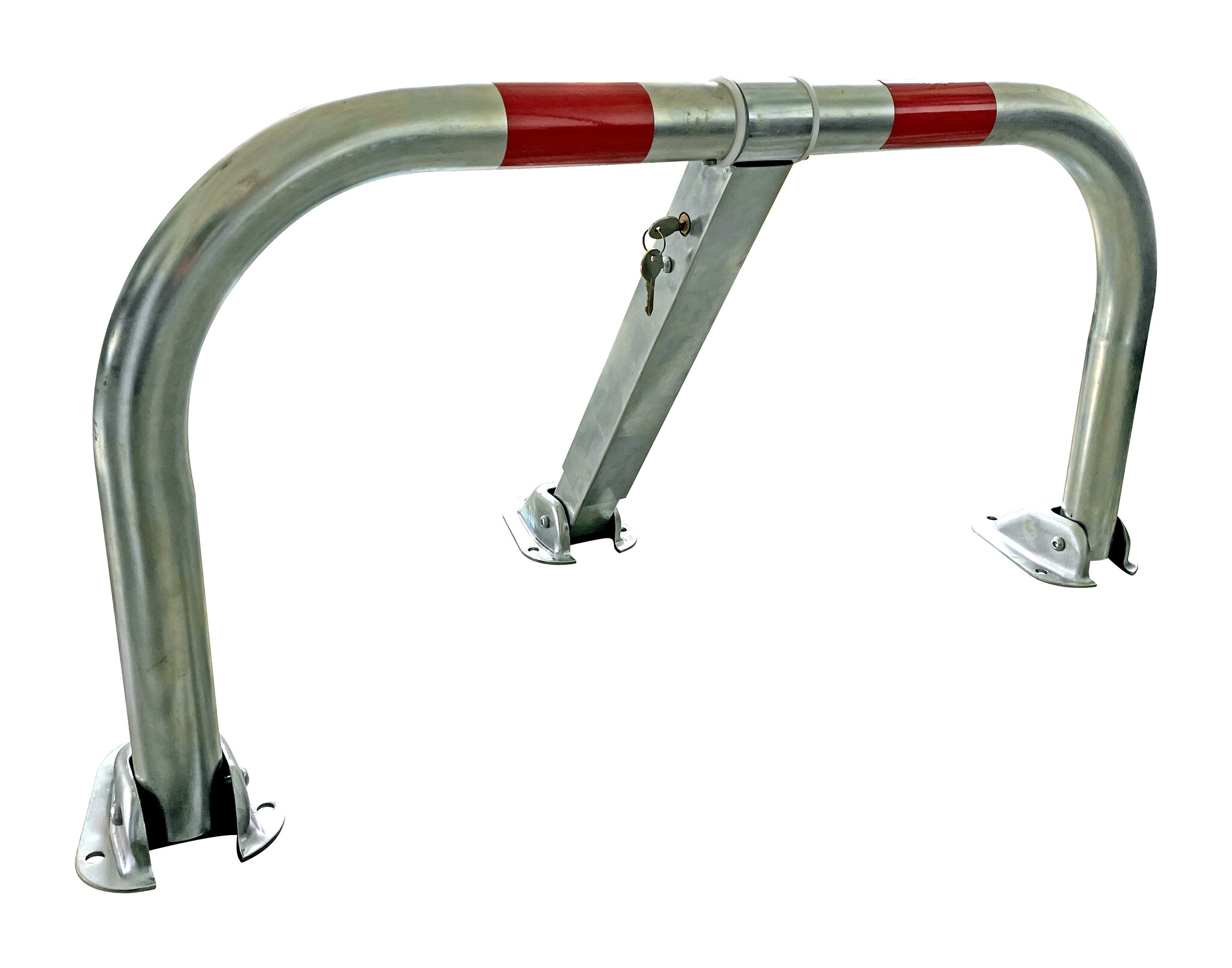 Avec ses dimensions de 970 x 460 mm, l’arceau constitue une barrière physique solide contre le stationnement indésirable. Les deux bandes réfléchissantes rouges assurent une visibilité optimale de jour comme de nuit, réduisant le risque de chocs.