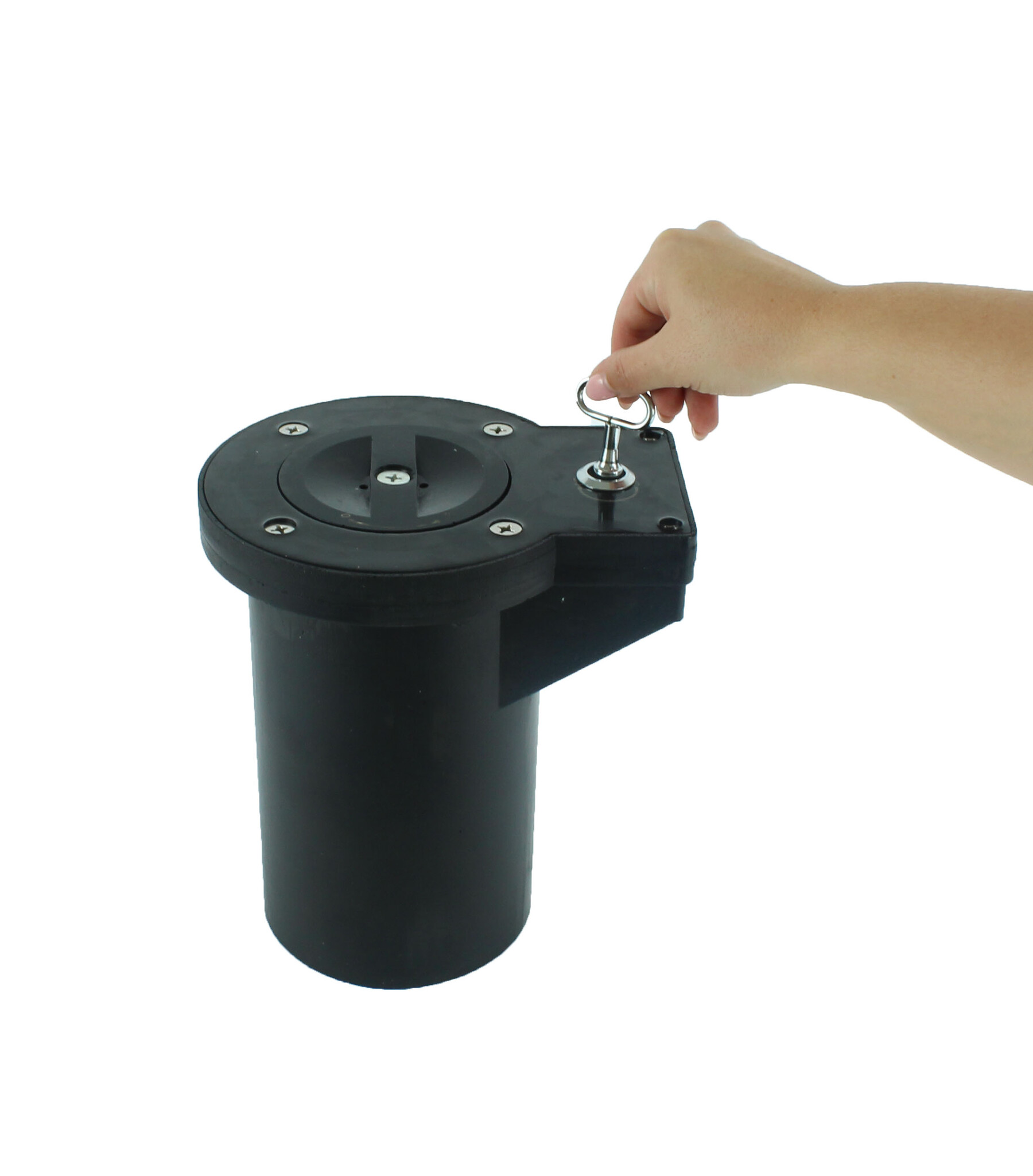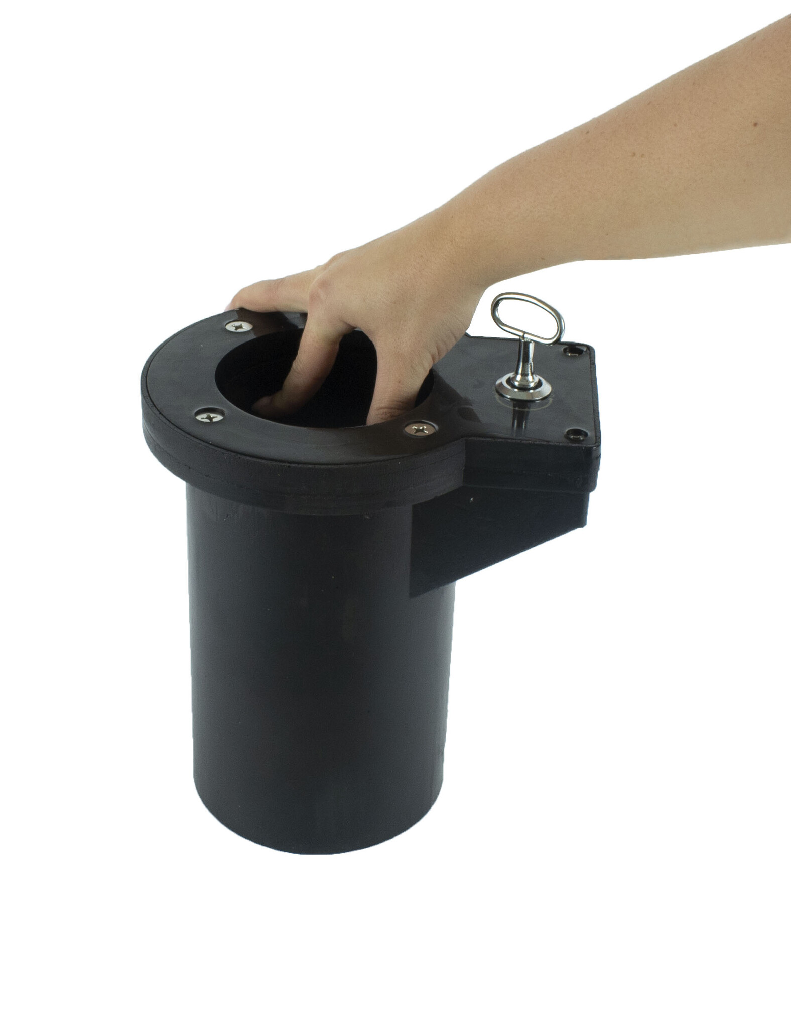 Le poteau de voirie est verrouillé (ou déverrouillé) dans le manchon de sol au moyen d'une clé triangulaire fournie.